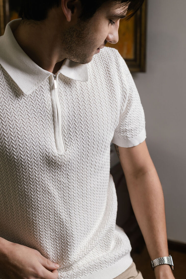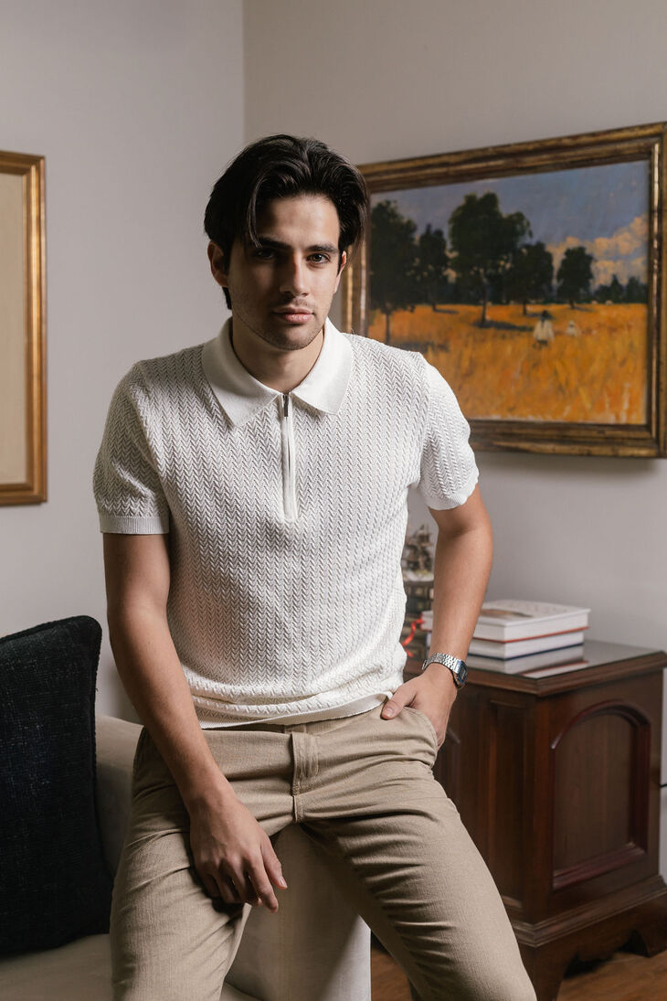Inspirado en la estética Old Money, este polo en color marfil con cuello clásico y cierre es la prenda ideal para lograr un look elegante sin esfuerzo. Confeccionado en 100% algodón, ofrece suavidad, frescura y un calce impecable. Su diseño sobrio pero sofisticado lo convierte en una excelente opción para salir, ya sea a una cena, un evento o una salida casual con estilo. Un básico refinado que eleva cualquier guardarropa masculino.