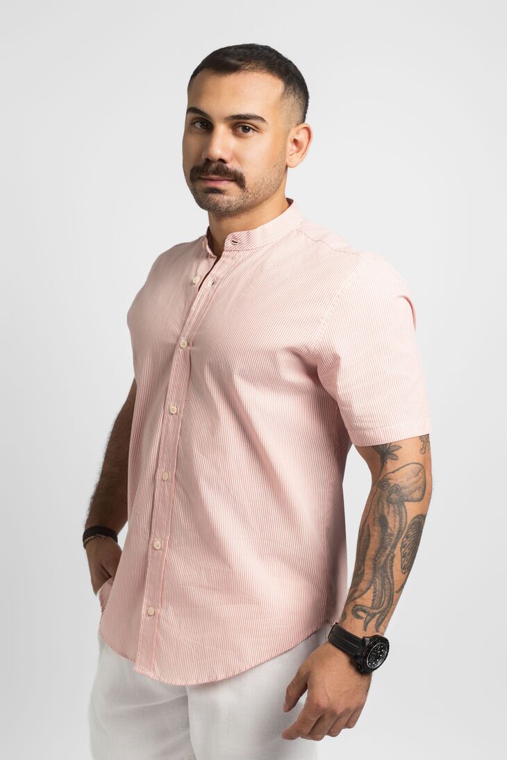 ¿Buscas una camisa casual pero con un toque diferente? Esta Camisa Liberato Basics de mangas cortas y corte regular te dará el estilo y la comodidad que necesitas. Con su cuello Mao de inspiración oriental, aporta un aire fresco y desenfadado a tu look diario. El patrón de rayas naranjas horizontales le da un toque distintivo y te ayudará a destacar con un estilo casual pero con carácter. Ya sea para un día caluroso de trabajo o para una reunión informal con amigos, esta camisa se convertirá en tu nueva prenda versátil y cómplice. La firma Liberato Basics vuelve a sorprendernos con una prenda práctica que combina a la perfección el confort y la originalidad.