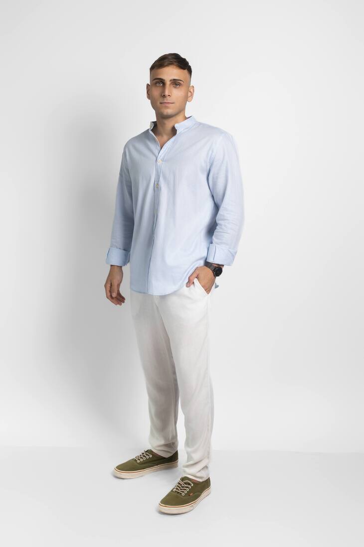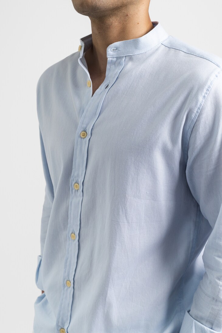 Bienvenida primavera con esta Camisa Liberato Basics de mangas largas y rayas celestes que piden a gritos ser usadas bajo el sol. Su corte regular fit es perfecto para moverte con soltura y comodidad, mientras que el cuello Mao le da un toque elegante al estilo casual. Esta pieza combina lo mejor de dos mundos: por un lado, es fresca y transpirable gracias a su mezcla de materiales; y por otro, tiene ese toque clásico de las rayas que le da un aire chic a tu outfit. Ya sea para la oficina con pantalones o para paseos al aire libre con shorts, esta Camisa Liberato Basics de mangas largas y cuello Mao será tu nueva compañera de primavera. ¡Que lleguen los días de calor!