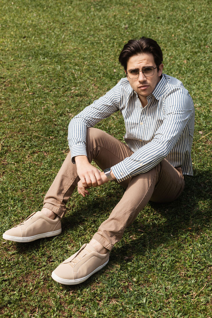 CAMISA LIBERATO MANGAS LARGAS RAYADA DE LINO CELESTE